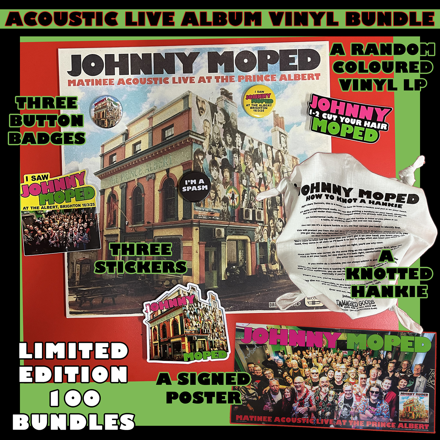 poster signed by all the band, and a special Johnny Moped (un) knotted