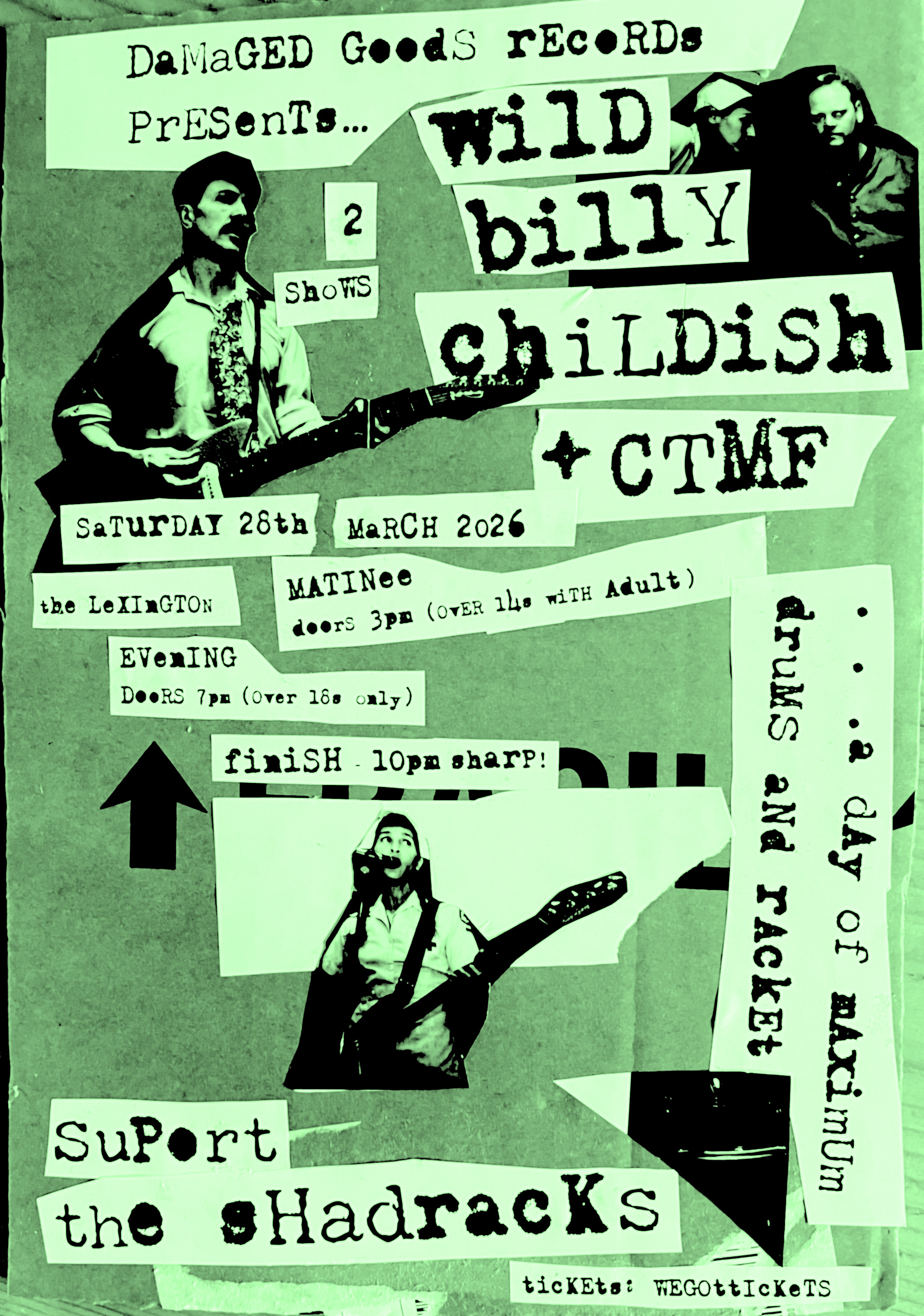 At 10am today, the tickets will go on sale for WILD BILLY CHILDISH & CTMF playing two shows at the Lexington in London