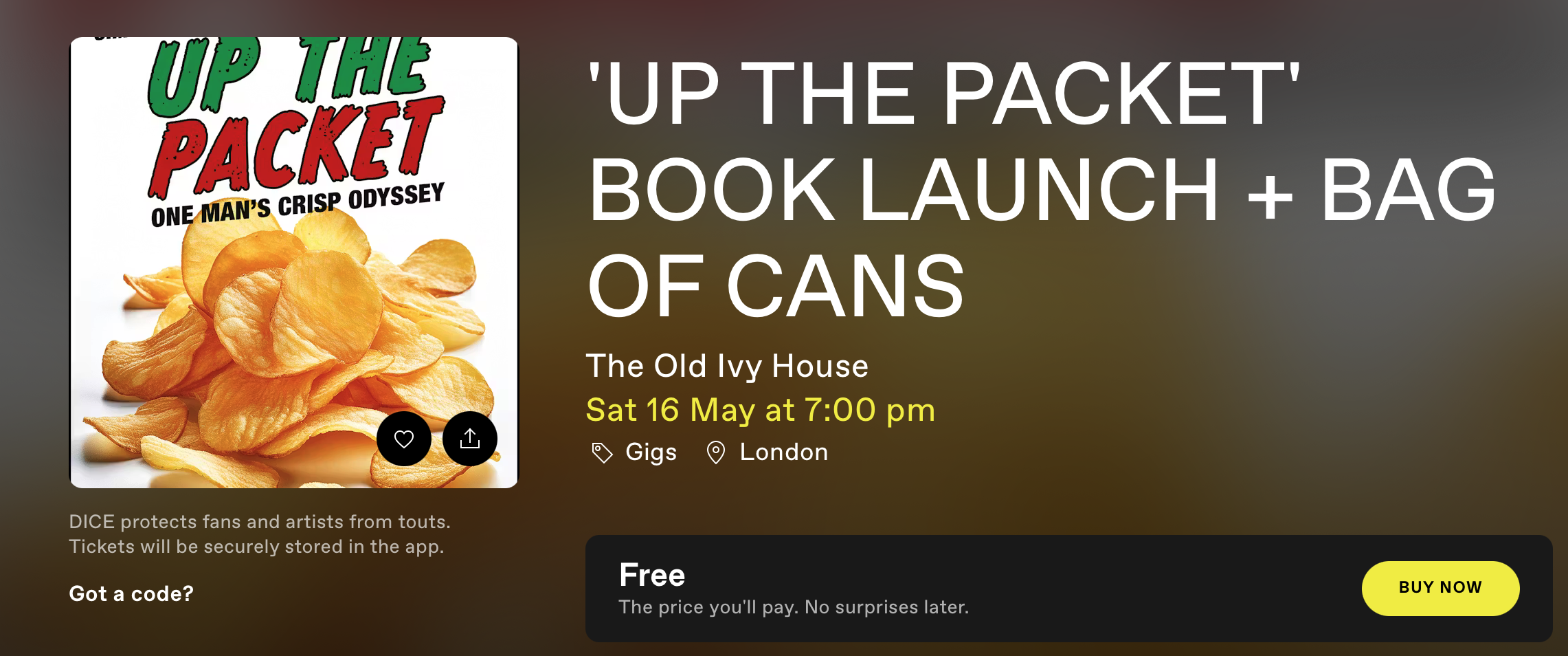 First up, ‘Up The Packet – One Man’s Crisp Odyssey’ is published May 14th. Compiled by former NME journalist, Fierce Panda Records head honcho, all round indie rock legend, and crisp packet collector Simon Williams, ‘Up The Packet’ details one man’s journey through rock n’roll and eating crisps.